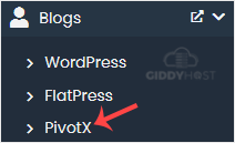 4. On the left side, locate the Blogs category. Click on it and then on the PivotX link that appears.