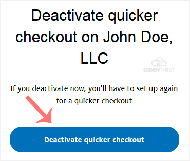 6. Confirmation message will display. Click Deactivate quicker checkout.
