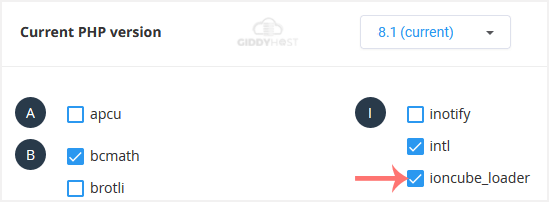 4. Checkmark the ioncube_loader. Once enabled, it will display a success message.